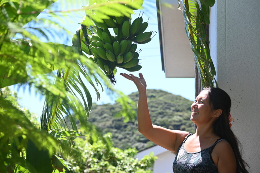 子どもを学校に送り出してから隙間時間で釣りをしたり、台風被害を受けた公民館を地域のみんなで修理したり、庭でバナナの木を育てたり。笑