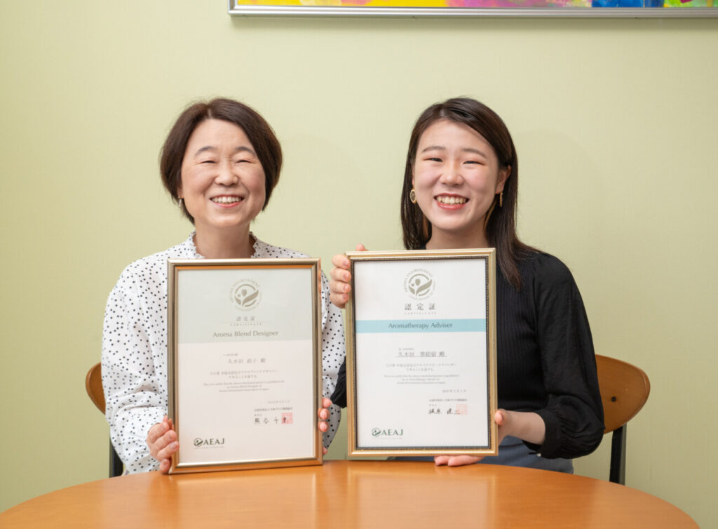 出迎えてくださったのは、Le Ciel Fusée代表でアロマテラピーアドバイザーの久木田紫絵留(しえる)さんと、紫絵留さんのお母様でアロマブレンドデザイナーの久木田政子さん。