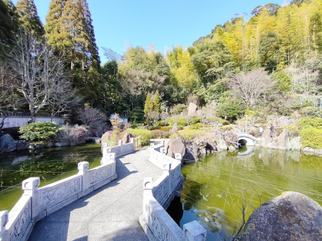 徐福の故郷中国との友好交流の願いを込めて作庭されたことからもわかるように、THE中華庭園!