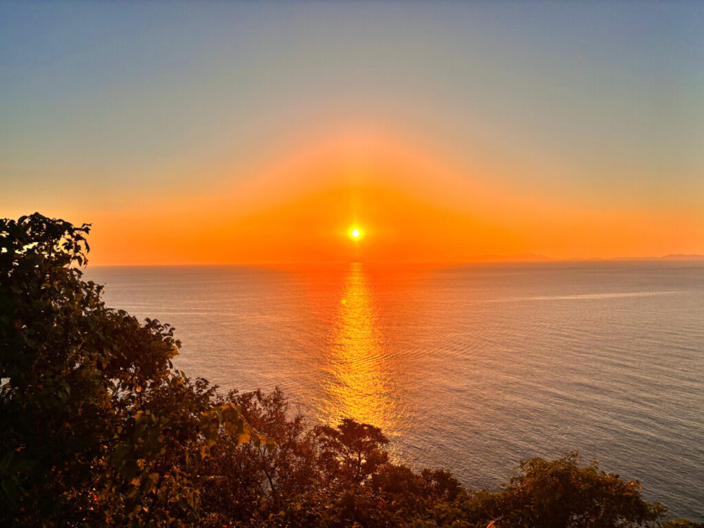 夕暮れ時、太陽が東シナ海に沈むと、空と海がオレンジ色に染まり、息をのむほど美しい夕日を楽しめます。