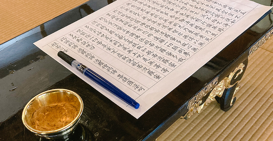 「静けさの中で、自分と向き合う」冠岳の山中に佇む古刹「冠嶽山鎭國寺 頂峯院」では、毎月第4日曜日の午前9時30分から「密禅会(写経・座禅)」が行われています。